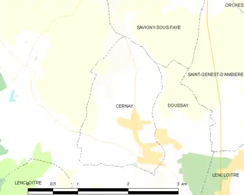 Les communes les plus proches de Cernay sont Lencloître, Doussay, Savigny-sous-Faye, Saint-Genest-d'Ambière et Orches.