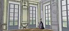 Vue d'artiste du vestibule du château de Bellevue dans son état en 1755.