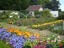 Le jardin bouquetier est composé suivant deux axes principaux, au croisement desquels se trouve un bassin circulaire. La grande serre abrite quelques espèces de plantes rares ou exotiques.