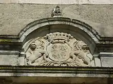 Les armes des Genas ont souvent été modifiées[15]. Avant 1429, les Genas avaient d'argent au genet de sinople, boutonné d'or. L'union de Louis, l'un d'eux, avec une fille de Charles Spifame, d'Avignon, mais originaires de Lucques, leur fit adopter l'aigle. François de Genas, président de la chambre des comptes du Dauphiné, en 1476, seigneur d'Aiguilles, écartela ses armes : 1° et 4° aux Genas et 2° et 3° aux Spifame, sa mère. Ce sont ces armes qui figurent sur le fronton du château de Genas.