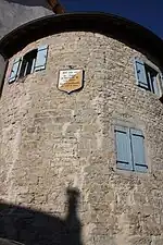 L'édifice possède une tour circulaire, sur laquelle une plaque rappelle qu'elle fut témoin de la naissance du futur pape Calixte II.