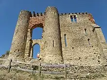 Les ruines actuelles sont les vestiges d’un vaste ensemble érigé au début du XVe siècle sur les fondations d’un château plus ancien, et comprennent en particulier la façade méridionale d’une chapelle, la porterie à tourelles que la jouxte, et deux hautes tours, connues sous le nom de tour circulaire et triangulaire. La forteresse, relevant du comté de Forez, au moins à partir du XIVe siècle, et inféodée tour à tour à différentes familles nobles, fut l’un des enjeux de la rivalité entre les évêques du Puy et les comtes de Forez.