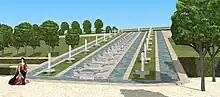 Restitution du bassin situé au dessus de la cascade de Sèvres, jardin du château de Saint-Cloud, vers 1700.