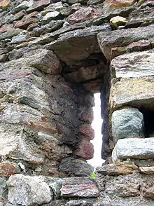 Le bâtiment d'habitation, probablement postérieur d'un siècle à la muraille et aux tours[2], présentait un toit à deux flancs, soutenu par un merlon sous laquelle se trouvaient les ouvertures pour l'écoulement de l'eau de pluie[2]. Au rez-de-chaussée, il y avait une seule pièce dotée d'embrasures, tandis que l'unique pièce du premier étage était dotée de fenêtres et de meneaux[2]. Dans le grenier, une dernière pièce était éclairée par les fenêtres creusées dans les deux frontons[2].
