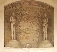 Petr Krajíček : « 4. Komnata "Hudebni" " (" 4ème secret : " Musique " ") - derrière : Neptune avec une équipe de quatre (relief en stuc sur le mur du " Vieux Palais ")