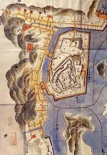 Le château est construit en 1594 par Kuki Yoshitaka, un amiral sous Toyotomi Hideyoshi, qui commande une force de pirates japonais, qui dominent la région de la baie d'Ise au cours de la période Sengoku. Le clan Kuki règne pendant trois générations jusqu'en 1633.