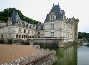 Suivant une disposition originale, l'édifice tout entier se voit alors isolé du reste du domaine par une douve. Tout en rappelant de manière symbolique l'importance militaire passée de l'édifice, le percement de ce fossé sert à remblayer les terrasses des jardins, formant ainsi une sorte de socle accessible par un pont-levis, d'où l'édifice peut dominer le panorama offert sur la vallée où coulent le Cher et la Loire.