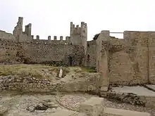 L'accès à la forteresse se fait par le raval au sud, une pente naturelle, et un chemin. Puis, un passage coudé permet d'accéder à la basse-cour close par un premier rempart. L'accès à la forteresse se fait par un deuxième accès coudé pratiqué dans la deuxième enceinte. À l'est de l'entrée se trouvaient les bâtiments. Il reste les traces du donjon, la chapelle et des bâtiments pour le service, ainsi que d'une ancienne citerne chrétienne.