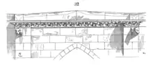 - le chéneau, d'environ 30 cm de large avec un « lit » de plâtre sur entablement en pierre. On peut marcher dedans pour son entretien ;
