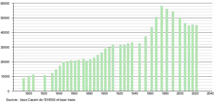 Avec ses 45 031 habitants au dernier recensement de 2021, il s'agit de la ville la plus peuplée du département (devant Mâcon, le chef-lieu), 4e ville la plus peuplée de la région (après Dijon, Besançon et Belfort, devant Auxerre et Nevers) et 2e plus grande ville de Bourgogne. Elle est classée 147e ville de France en nombre d'habitants (sur 35 357 communes). C'est également la plus densément peuplée du département avec près de 3 000 habitants/km2[2].
