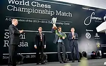 Le Championnat du monde d'échecs 2014 est l'édition 2014 du championnat du monde du jeu d'échecs. Cette compétition organisée par la Fédération internationale des échecs opposa en novembre 2014, dans la ville russe de Sotchi[1], le Norvégien Magnus Carlsen, no 1 mondial et champion du monde en titre, à l'Indien Viswanathan Anand, no 6 mondial et prédécesseur de Carlsen en tant que champion du monde.
