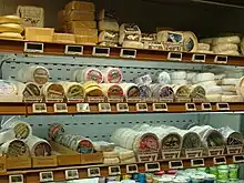 La production fromagère est très variée. Il s'agit le plus souvent de tommes, de dimensions diverses, associant parfois plusieurs laits : tomme de montagne, tomme des Hautes-Alpes, tomme du Champsaur, Chaudun, Moutet, Pacoulino, lou Cabrié, Bleu de Bayard, Persillé du col Bayard, Aiguille d'Orcières, Gavoua, lou Baïle, le Testard, Le Pic du Vieux Chaillol, Tome aux deux laits, Tome aux trois laits, Tome grise, Fromage au génépy, etc. Le Saint-laurent se distingue par sa forme carrée. On ne trouve plus « cette célébrité du Champsaur qu'était le fromage de Champoléon »[31], couvert d'une épaisse croûte orange, à pâte striée en son milieu d'une raie bleue comme le Morbier[32].