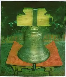 - Ces informations figurent sur les inscriptions de la cloche. Sa fabrication n'est pas mentionnée dans les registres de Villedieu-les-Poêles, ce qui laisse supposer qu'elle fut fondue en secret.