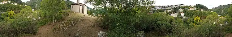 La chapelle sépare la vallée des rouets et la vallée des usines. Elle surplombe, au fond de la vallée tortueuse et pittoresque de la Durolle, tous les villages et lieux-dits l'avoisinant[6]. Depuis les montagnes et collines s'en approchant vaguement, elle semble vouloir monter le plus haut possible dans l'altitude face au grondement des rouets et des cascades au fond de la vallée l'entourant.
