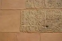 Son décor est composé de blocs reliés entre eux par des liaisons en queue-d'aronde et chaque bloc contient entièrement une scène particulière ; ainsi aucun visage ou autre élément du décor n'est coupé par un joint.