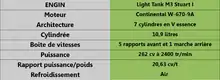 - Motorisation : Cadillac Twin (2 V-8 à essence refroidis par eau) développant 242 ch (178 kW)