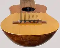 Mais on trouve aussi des charangos en bois collé pour le fond, avec des éclisses (en bois courbé à chaud), comme une petite guitare.