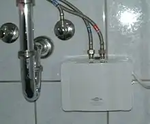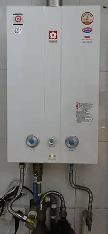 - Sécurité : Les chauffe-eau sans réservoir contrôlent avec précision la température de l'eau, ce qui signifie que les niveaux de température dangereux et les pics sont moins probables[13]. Un avantage de sécurité supplémentaire découle de la réduction de l'exposition aux métaux toxiques dissous, qui ont tendance à se produire à des concentrations plus élevées dans l'eau chaude qui a séjourné dans un réservoir de chauffe-eau conventionnel pendant de longues périodes.