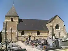 Vue aérienne de l'église Saint-Martin de Chavot (village de Moussy en arrière-plan). | |