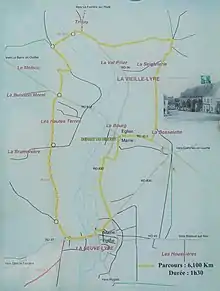 Le chemin est, à présent, une boucle qui part de La Vieille-Lyre pour rejoindre La Neuve-Lyre puis traverse les champs pour revenir à La Vieille-Lyre. Il reprend les sentiers parcourus par les moines pour leurs travaux agricoles[2]. Le chemin passe par les anciennes fermes devenues hameaux du village (Trisay, la Seigleterie, La Bosselette).