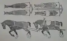 Une autre amélioration réside dans la nouvelle disposition des équipes d’attelage de chevaux, les uns derrière les autres plutôt que côte à côte, le poids peut être réparti de manière plus égale et la puissance de traction s’en trouve accrue[132].