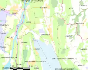 Chindrieux est la commune la plus vaste de la Chautagne (canton de Ruffieux), avec 1 642 hectares[2], et compte 13 hameaux : Groisin, Lachat, Expilly, Portout, Viuz, Chevigneux, Praz, Vars, la Tour, Chaudieu, Rigolet, Champfleury et Châtillon.