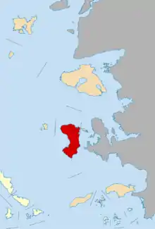 Avec les îles de Psará et d'Inousses, elle forme le district régional de Chios, dont la capitale, également appelée Chios ou Chora, compte en 2011 52 674 habitants[1].