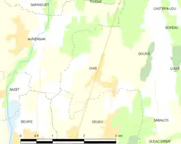 Les communes les plus proches[Note 1] sont[3] : Dours (1,5 km), Orleix (1,6 km), Sabalos (1,8 km), Bours (2,9 km), Louit (3,0 km), Aurensan (3,0 km), Oléac-Debat (3,1 km), Collongues (3,4 km).
