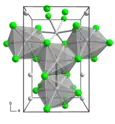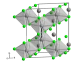 | __ Mo __ Cl Structure cristalline du chlorure de molybdène(III) α (à gauche) et β (à droite) |