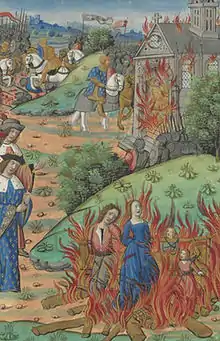 au premier plan : Mort de Chramn. Guillaume Crétin, chroniques françaises. Après 1515, Rouen, France. Bibliothèque nationale de France.