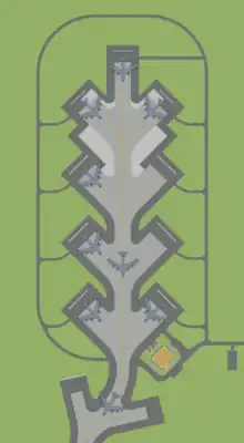 Avant le développement du Boeing B-52 Stratofortress, des avions tels que le Convair B-36 Peacemaker, le Boeing B-50 Superfortress et le Boeing B-47 Stratojet étaient garés sur des branches d'alerte à angle droit par rapport à la bretelle. La taille du nouvel aéronef a posé problème pour le lancement efficace des aéronefs en cas d'urgence, nécessitant la mise au point d'une solution différente. Pour résoudre ce problème, les aéronefs ont été repositionnés sur des aires de trafic spécialement conçues, disposées en chevrons, ce qui leur a permis de se frayer un chemin sur la piste le plus rapidement possible.