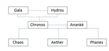 Toutefois, dans la Théogonie d'Hésiode, c'est le Chaos qui est à l'origine des dieux primordiaux.
