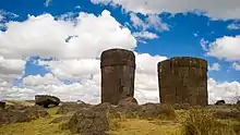 À Sillustani,dans la province péruvienne de Puno, les chullpas sont regroupées sur une presqu'île du lac Umayo, à environ 4 000 mètres d'altitude, en un groupe principal et quelques groupes mineurs un peu à l'écart. Les dates de construction s'étendent sur plusieurs périodes culturelles, mais la majorité remontent à l'Empire inca[8]. La structure la plus imposante, appelée chullpa del Lagarto ("la chullpa du lézard" en espagnol) à cause du bas-relief représentant cet animal qui l'orne, a une forme de cône tronqué renversé : la partie supérieure est plus large que la base, probablement pour des motifs esthétiques plutôt qu'architecturaux.