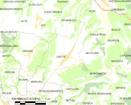 Les communes les plus proches[Note 1] sont[4] : Artiguemy (2,6 km), Chelle-Spou (2,7 km), Poumarous (3,3 km), Orignac (3,7 km), Castillon (3,8 km), Argelès-Bagnères (3,9 km), Gourgue (4,3 km), Mérilheu (4,5 km).