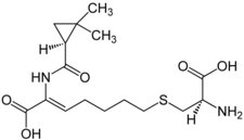 | Nom UICPA | acide (2Z)-7-{[(2R)-2-amino-2-carboxyéthyl]sulfanyl}-2-({[(1S)-2,2-diméthylcyclopropyl]carbonyl}amino)hept-2-énoïque |