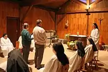 Chaque matin les Sœurs se rassemblent autour de la table eucharistique : à la messe, qui est la source et le sommet de la journée.
