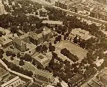 - Le Wingate Hall, ainsi nommé en l'honneur de l'avocat George Wood Wingate, grand défenseur de la cause du sport, ancien élève diplômé en 1858[18]. Le Wingate Hall a abrité le principal gymnase du campus de 1907 à 1972.