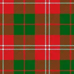Tartan Chisholm d'après le scottish vestiarum. La base est un damier de bandes rouges et vertes. Les bandes rouges sont chargées au centre de deux filets blancs ; les bandes vertes sont chargées d'un filet rouge au centre. |