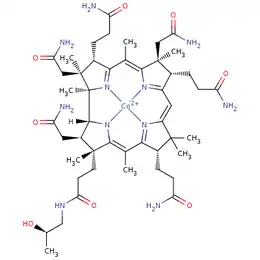 Nom UICPA 3-[(5Z,10Z,15Z)-2,7,18-tris(2-amino-2-oxoéthyl)-3,13-bis(3-amino-3-oxopropyl)-17-[3-(2-hydroxypropylamino)-3-oxopropyl]-1,2,5,7,12,12,15,17-octaméthyl-8,13,18,19-tétrahydro-3H-corrin-24-id-8-yl]propanamide ; cobalt(2+)