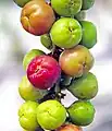 Le fruit du raisinier est une fausse-drupe[alpha 1], comestible. Il a la particularité d'être formé de l'ensemble de sépales accrescents, épaissis et colorés[2],[3].