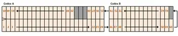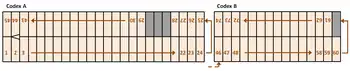La numérotation des pages a été effectuée par Agostino Aglio, qui fut le premier à transcrire le manuscrit entre 1825 et 1826. Pour ce faire, il a divisé le codex en deux parties, intitulées Codex A et Codex B. Et il a établi la séquence de lecture suivante : Lecture complète du recto du Codex A, suivie de la lecture du verso en sens inverse, c’est-à-dire à partir de la dernière feuille du recto, puis lecture du Codex B dans le même ordre.