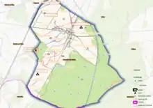 L'occupation des sols de la commune, telle qu'elle ressort de la base de données européenne d’occupation biophysique des sols Corine Land Cover (CLC), est marquée par l'importance des forêts et milieux semi-naturels (52,5 % en 2018), une proportion sensiblement équivalente à celle de 1990 (52,2 %). La répartition détaillée en 2018 est la suivante : forêts (47,3 %), terres arables (26,2 %), prairies (14,8 %), milieux à végétation arbustive et/ou herbacée (5,2 %), zones urbanisées (4,7 %), cultures permanentes (1,9 %)[17]. L'évolution de l’occupation des sols de la commune et de ses infrastructures peut être observée sur les différentes représentations cartographiques du territoire : la carte de Cassini (XVIIIe siècle), la carte d'état-major (1820-1866) et les cartes ou photos aériennes de l'IGN pour la période actuelle (1950 à aujourd'hui)[Carte 1].