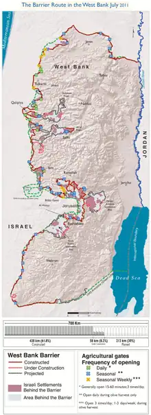 - United Nations Office for the Coordination of Humanitarian Affairs - Occupied Palestinian Territories, « https://www.ochaopt.org/theme/west-bank-barrier », sur ochaopt.org (consulté le ).