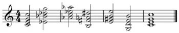 « À cause de leur équidistance, les toniques de ces trois accords produisent un effet instable. Si Do, La