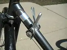 À droite : ancienne manette à trois vitesses de dérailleur arrière.