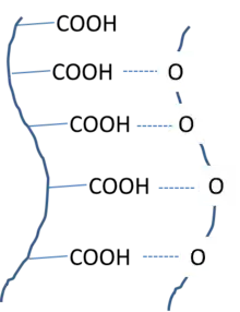 | Liaison hydrogène[5] | Un polymère accepteur de liaison hydrogène : l'oxyde de polyéthylène (PEO) | Un polymère donneur de liaison hydrogène : l'acide polyacrylique | |