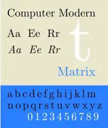 Computer Modern est une famille de polices de caractères utilisée par défaut dans les systèmes de composition de document TeX. Elle a été créée par Donald Knuth à l'aide du programme Metafont, et a été mise à jour pour la dernière fois en 1992[1]. Elle a été remplacée en 2008 par CM-Super (Computer Modern-super)[2]. Cette dernière fut enrichie par CM-LGC qui prend en charge le latin, le grec et le cyrillique, et dont la dernière publication date de 2005. Ces deux familles CM-Super et CM-LGC sont fournies dans TeX Live, une distribution moderne de TeX.
