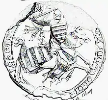 Au printemps 1189, un hommage lige est attesté entre Thibaut Ier de Bar et Louis III de Chiny. En , Louis IV renouvelle l'hommage. En , se déroule au château de Mouzon une cérémonie d'hommage-lige avec Arnould III, fiancé de Jeanne de Chini. La proximité des lignées comtales se retrouvent dans le choix des armes du comté de Chiny, De gueules semés de croisettes d'or à deux bars adossés de même brochant sur le tout[10]. Mais d'autres armes de la maison de Chiny sont connues : D'or et de gueules de huit pièces au lion de fable, brochant sur le tout.