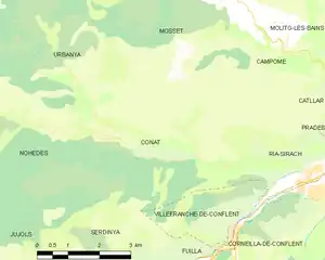 Situation de Conat sur une carte topographique des Pyrénées-Orientales.