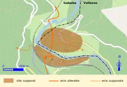 Le site présumé de Condate, de part et d'autre du viaduc au premier plan. | |||
